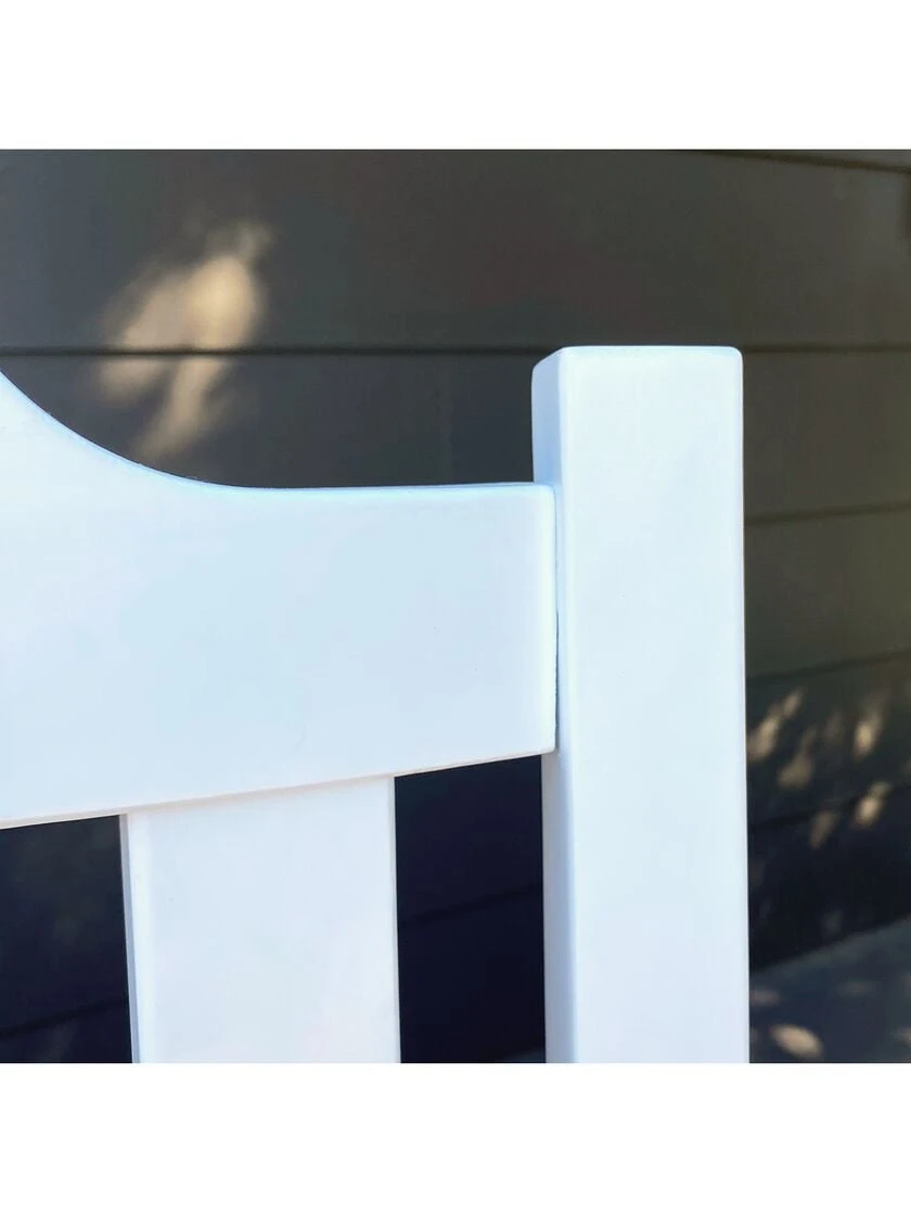 The rocking chair is a universal symbol of comfort and relaxation. The effortless motion of a good rocker changes your whole attitude. Accompanied by a mug of coffee, a book, perhaps a glass of wine, or simply the serenity of your own thoughts, it’s the perfect oasis. Solid premium Eucalyptus wood construction, farmed in an environmentally-friendly way and prized for its teak-like properties of density and extreme durability in all weather conditions. A full 24 lbs of Eucalyptus wood goes into each Americana rocker. Individual components are fitted together with centuries-old Mortise and Tenon joinery techniques. This combination of premium wood and superior construction is what enables our rocking chairs to be truly weatherproof for use on the porch, patio, deck, or garden space. The design of our rocking chair – the attention to detail in comfort, aesthetics, and excellent rocking motion – really makes it stand out. Sink in to our double-contoured seat and you’ll immediately notice the tension release from your body. A light push-off with your foot and you can’t help but succumb to that familiar rocking motion. And that’s when you realize that you have a new favorite chair. This chair is at the pinnacle of rocking chair design, from details like arm shape and thickness, weatherproof materials, to seat and back contour and balance point. Despite being significantly less expensive than other high quality weatherproof rocking chairs, it is one of the best rockers money can buy.