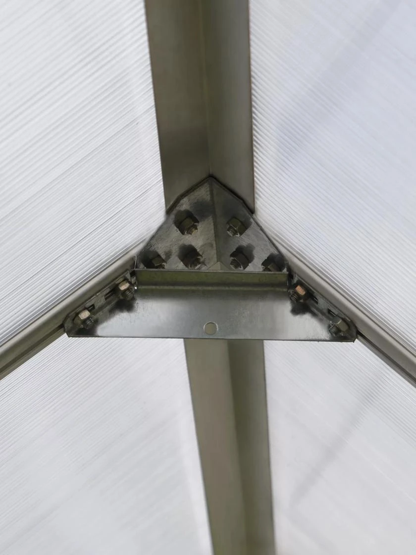 The essence of spacious gardening; this greenhouse features high headroom and 96 square feet for improved working space, wide double doors and low threshold for comfortable and easy access. Two vent windows allow temperature, humidity and airflow regulation. Additionally it includes a Galvanized Steel base, adding structural support, stability and alignment. Set up is easy and fast with the Sliding panels’ assembly system; just slide and lock the virtually unbreakable, twin-wall polycarbonate panels right into the greenhouse frame. Your plants will enjoy an insulated environment, protected from strong sunlight exposure and great conditions for nurture and growth.