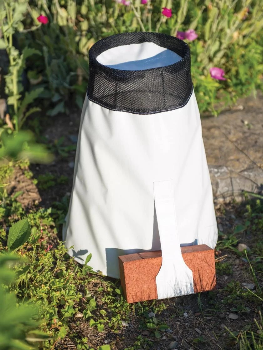 - The reflective white cover prevents heat build-up, and the mesh top allows heat and moisture to escape, reducing the chance of the plant breaking dormancy too early. (Styrofoam rose cones hold in too much heat and moisture.)