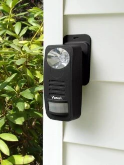 Deer are surprisingly adaptable. A beep, tweet or honk may startle them at first, but they soon learn to ignore it and get back to foraging in your garden. A well-known PhD and garden author finally came up with a solution. This motion-activated device shines a bright light and plays an FM radio station you select. Because the sound is ever-changing, deer don’t learn to ignore it. Human voices make them particularly nervous — talk radio is ideal.